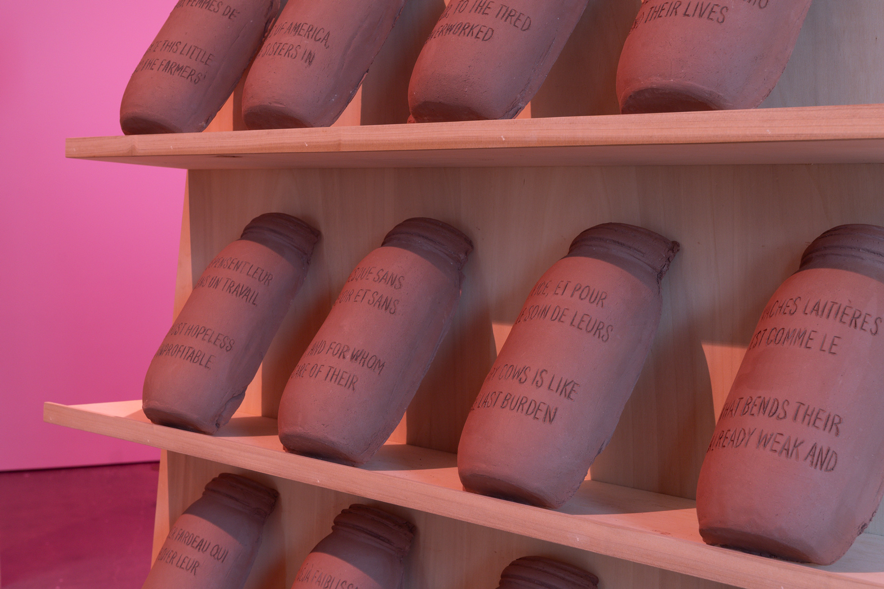 Qu’est-ce qu’on peut construire sur un sol en mouvance [What can you build on land that keeps moving] interweaves several stories traversed by the same history: a shift of the commons, a change from intimate knowledge to a profit-driven rationale. It all begins with a century-old ceramic jar for beans, given to the artist by her grandmother, which elicits memories of shared cooking, a communal oven, an economical and cooperative act. At the same time, Anouk Verviers also explores a second archive about the transformation of butter production in Canada, which changed from a domestic, female skill to an export-based, male industry. These two contrary movements reveal the same shift.