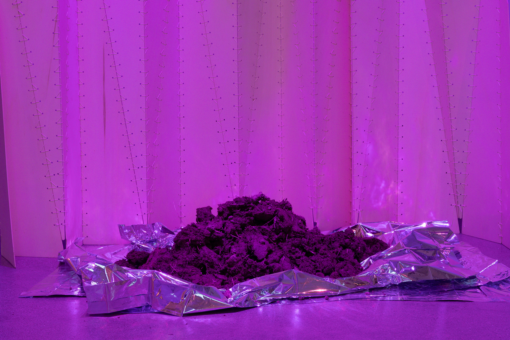 The exhibition delves into these stories and the ideas about land, heritage, and dispossession that they evoke. By traversing layers of history, gestures, and voices, Verviers probes the cracks of a divisive economic system to reinvent forms of “living together.” In order to create a dialogue between them, she uses the actions of churning to make mud bricks, adding fragments of thoughts to them. In the gallery, a reconstructed fragment of the Canadian pavilion at the 1886 Colonial and Indian Exhibition in London holds four videos representing different attempts at creating a dialogue between the personal and the political and perhaps rediscovering the meaning of working together.